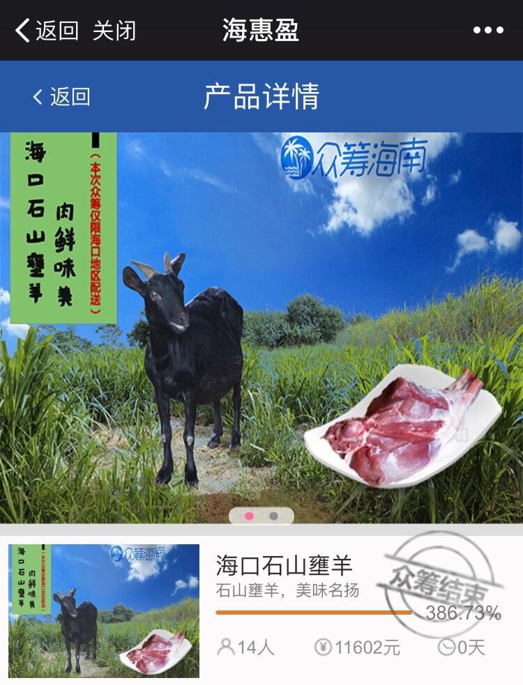 3月19日,海南股權(quán)交易中心“眾籌海南”石山壅羊眾籌項(xiàng)目圓滿結(jié)束,籌集金額11602元,眾籌成功率386.73%,成功實(shí)現(xiàn)資金募集目標(biāo)?!笆桔昭颉笔呛D鲜教禺a(chǎn)之一,因其特殊的喂養(yǎng)飼料和獨(dú)特的養(yǎng)殖方式而出名。石山...