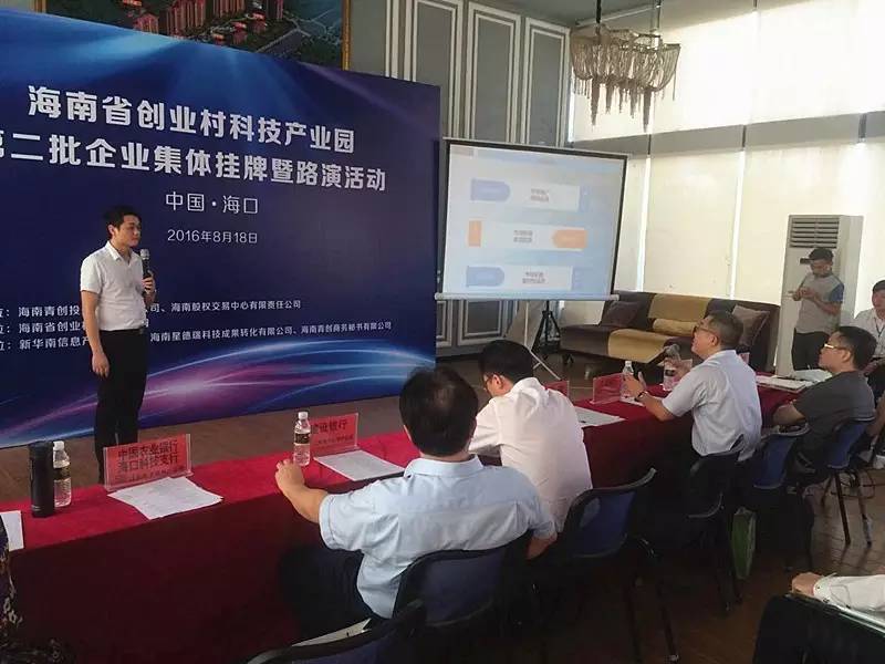 8月23日上午,海南股權交易中心聯(lián)合海南青創(chuàng)投資管理有限公司在海南省創(chuàng)業(yè)村科技產(chǎn)業(yè)園舉辦第二批企業(yè)集體掛牌儀式暨路演活動。這也是繼創(chuàng)業(yè)村科技產(chǎn)業(yè)園服務中心正式運營以來的首場重要活動。