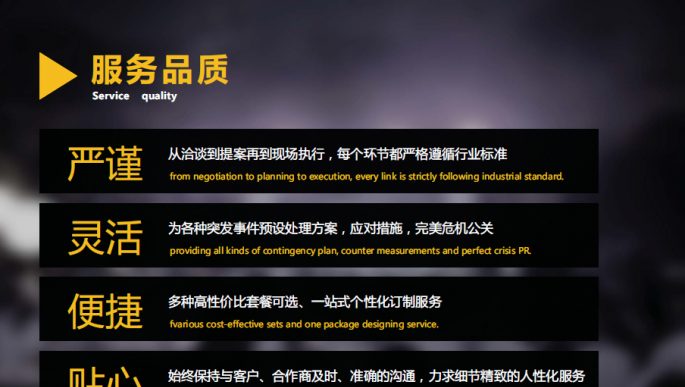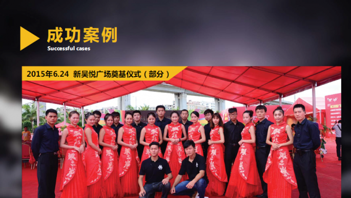 | 企業(yè)說明: | 博峰文化傳播有限公司(下文統(tǒng)稱為博峰)是一家致力于提供文化傳播類服務(wù)的專業(yè)機(jī)構(gòu),我們承接慶典活動、商務(wù)會議、高端晚宴、文藝匯演等,能為公益、商業(yè)、娛樂等各類性質(zhì)的文化傳播活動提供一站式服務(wù)。博峰善于整合已有的資源,創(chuàng)立至今已有自己較為完善的團(tuán)隊,我們提供全程的策劃執(zhí)行、優(yōu)質(zhì)的演繹資源和高端的舞美設(shè)備;我們不斷進(jìn)步,致力于發(fā)展成為管理體制健全、富有創(chuàng)造力、客戶信賴、享譽(yù)業(yè)界的文化傳播服務(wù)公司。 博峰以??谑凶鳛楣窘?jīng)營服務(wù)的重點,公司經(jīng)營服務(wù)范圍向三亞市輻射擴(kuò)大。博峰作為文化傳播公司,主要為公司、團(tuán)體、政府,個人提供各類傳播活動。公司經(jīng)營范圍大致分為5類,分別為演出經(jīng)紀(jì)類、品牌推廣類、展覽展示類、慶典類、模特禮儀類,博峰主要以品牌推廣類、展覽展示類、慶典類3項創(chuàng)意技術(shù)類項活動為主。