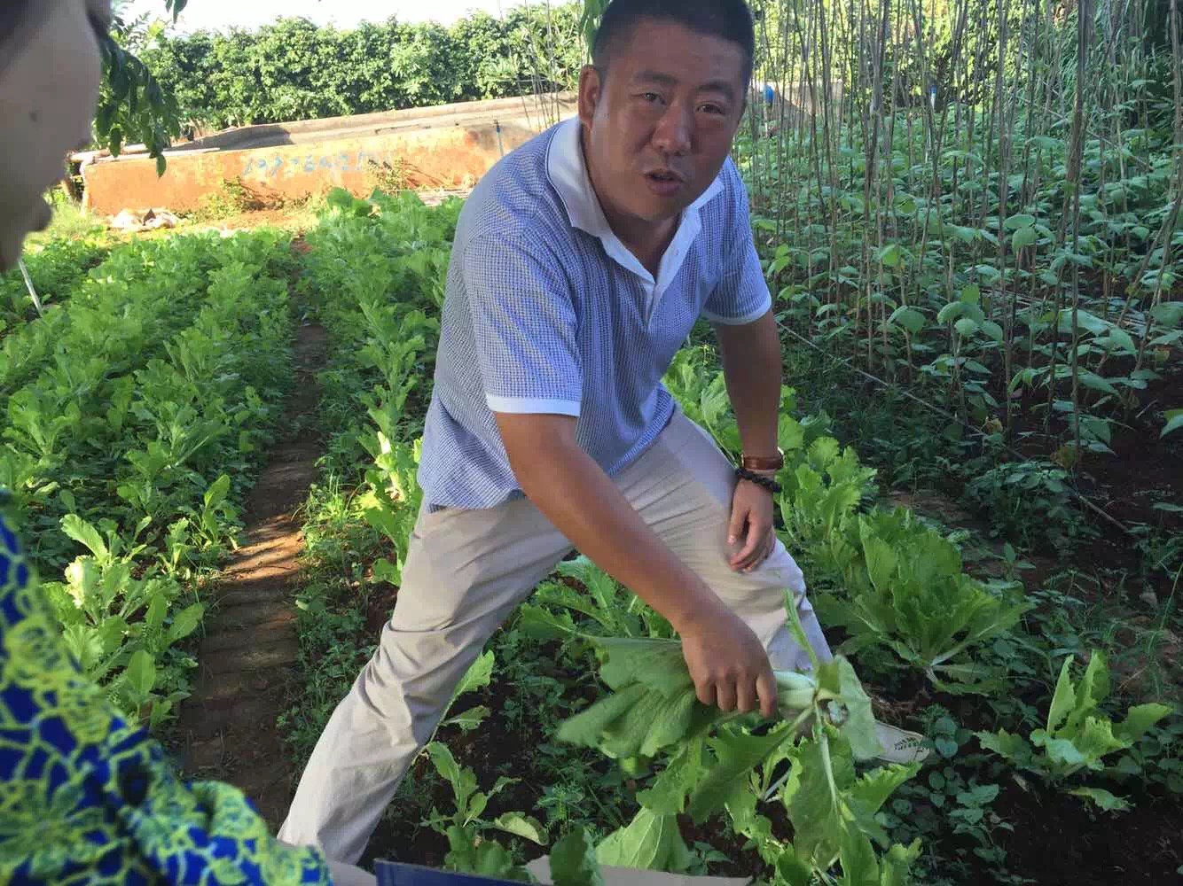 曹總親自上陣拔下了一株成熟的蔬菜。
