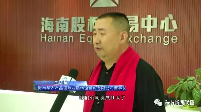 海南某農(nóng)產(chǎn)品國(guó)際冷鏈物流股份有限公司 董事長(zhǎng) 王鴻駿:通過這次掛牌 我們公司發(fā)展壯大了 企業(yè)的推動(dòng)力和資源整合能力加強(qiáng)了。