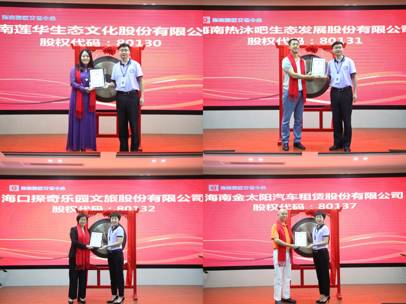 隨著一陣鑼聲響起,4家企業(yè)正式宣告掛牌海南股權(quán)交易中心。