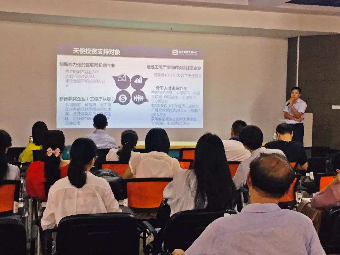 股交中心機構(gòu)合作部負責(zé)人蔣文斌為在場企業(yè)介紹了區(qū)域性股權(quán)交易市場的現(xiàn)狀及股交中心的發(fā)展狀況,并就“股交中心如何助力海南高新技術(shù)及科技型企業(yè)發(fā)展”這一核心問題進行了詳細的說明和講解,同時,向在場的企業(yè)介紹了股交中心于6月20日正式設(shè)立的海南首個專注于互聯(lián)網(wǎng)初創(chuàng)企業(yè)天使投資的服務(wù)板塊“天使板”及天使投資相關(guān)情況,鼓勵和歡迎高新技術(shù)及科技型企業(yè)掛牌天使板,通過天使板實現(xiàn)企業(yè)融資和發(fā)展的目標。