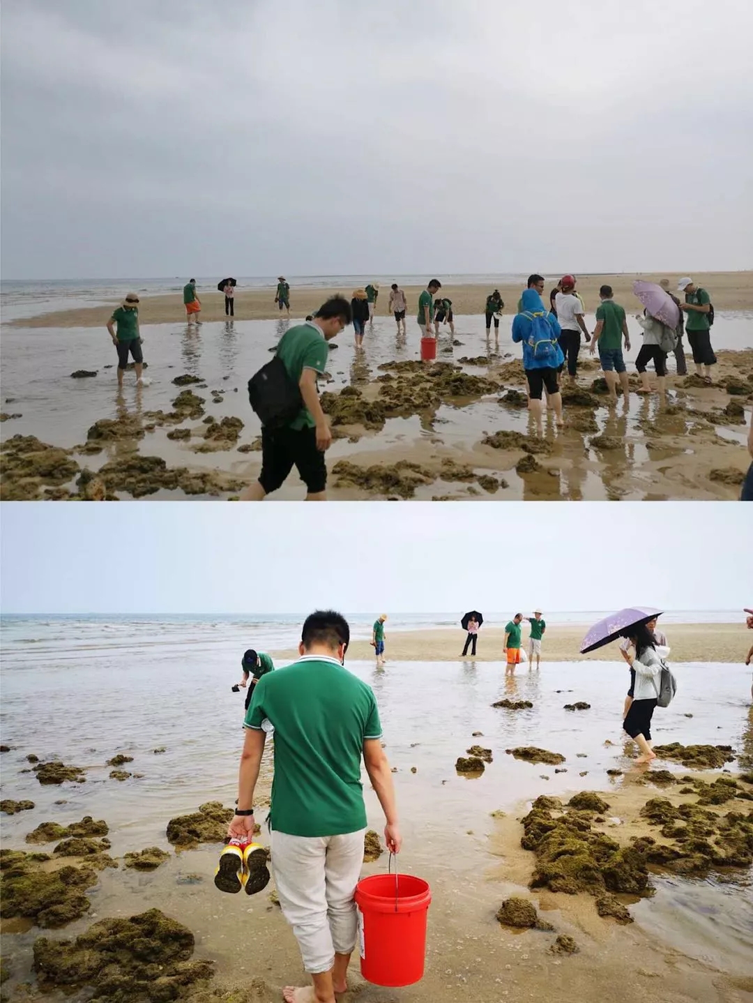 在聽完趕海內(nèi)容及注意事項講解后,大家三三兩兩,組隊而行,邊呼吸著海邊清新的空氣,邊欣賞沿岸廣袤的淺海灘風(fēng)景,體驗逐浪趕海。
