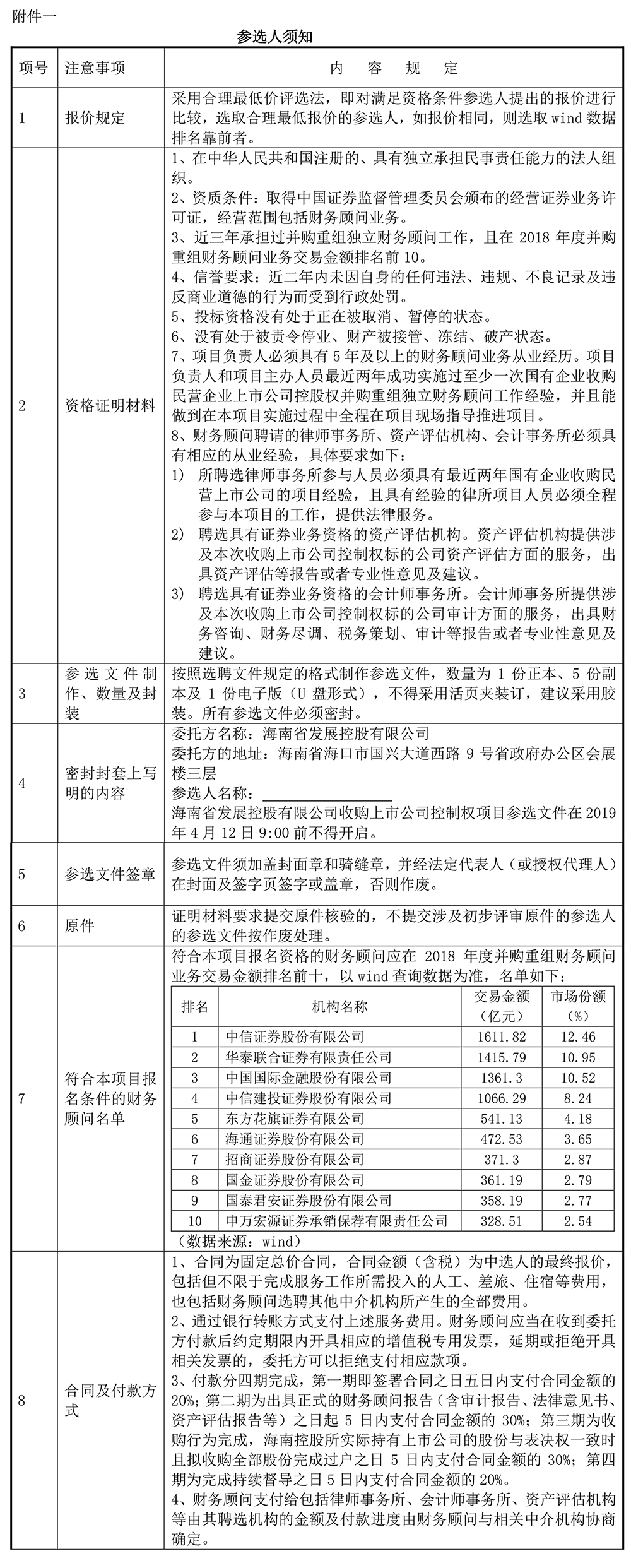 【公開選聘】海南省發(fā)展控股有限公司公開選聘財務(wù)顧問