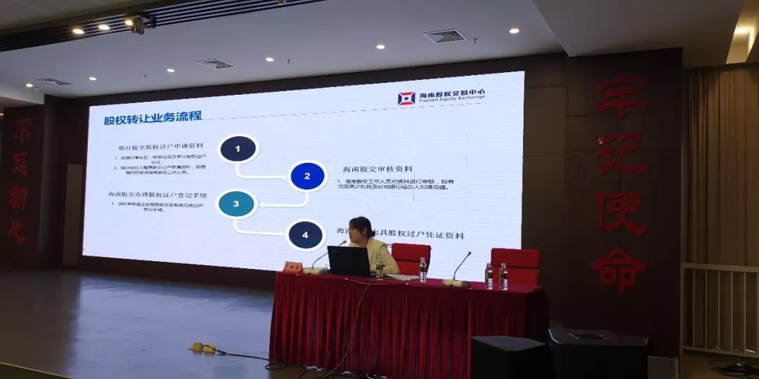 培訓(xùn)會(huì)上,海南股交總經(jīng)理助理卜麗麗向現(xiàn)場(chǎng)參會(huì)人員介紹了商業(yè)銀行股權(quán)登記托管的重要性和必要性。她表示,股權(quán)登記托管是區(qū)域性股權(quán)交易市場(chǎng)的一項(xiàng)基礎(chǔ)工作,也是主要業(yè)務(wù)之一。海南股交作為省內(nèi)唯一合法的區(qū)域性股權(quán)交易市場(chǎng)運(yùn)營機(jī)構(gòu),成立至今,股權(quán)托管企業(yè)共計(jì)90家,托管總股本達(dá)67.05億股,積累了豐富的股權(quán)托管工作經(jīng)驗(yàn)。2018年,海南銀行股份有限公司在海南股交成功辦理股權(quán)登記托管手續(xù),成為省內(nèi)首家完成股權(quán)登記托管的法人銀行,標(biāo)志著海南省銀行股權(quán)登記托管業(yè)務(wù)實(shí)現(xiàn)零的突破。