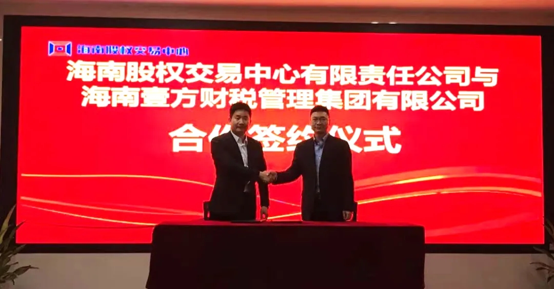 12月14日下午,海南股交與海南壹方財(cái)稅管理集團(tuán)有限公司(以下簡稱“壹方財(cái)稅集團(tuán)”)在澄邁老城軟件園舉行商務(wù)服務(wù)合作簽約儀式。雙方本著平等互利、資源共享、優(yōu)勢互補(bǔ)的原則,建立合作伙伴關(guān)系,拓展雙方業(yè)務(wù)領(lǐng)域,實(shí)現(xiàn)互惠共贏。海南股交執(zhí)行總經(jīng)理程棟才、總經(jīng)理助理卜麗麗、壹方財(cái)稅集團(tuán)總裁胡天宇、營銷副總裁陳雷參加了簽約儀式。