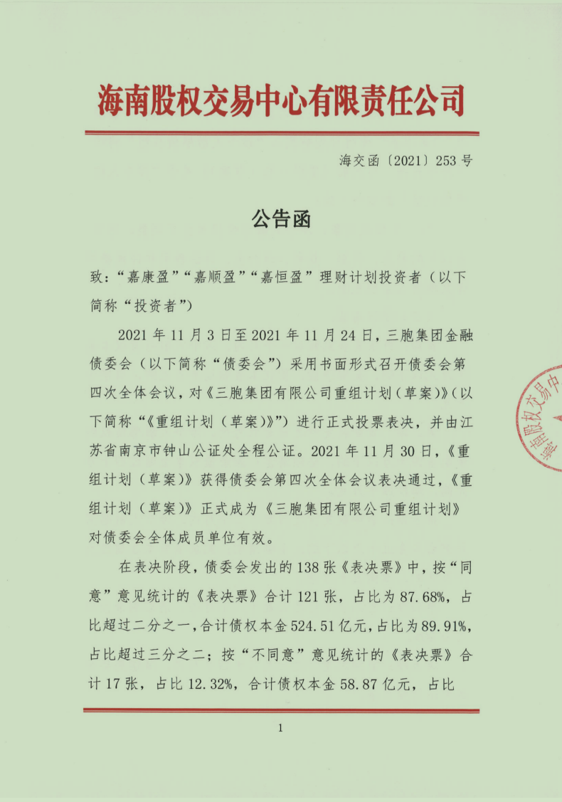 致“嘉康盈”“嘉順盈”“嘉恒盈”理財(cái)計(jì)劃投資者的公告函