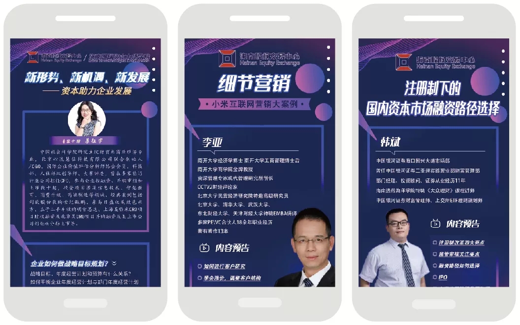 線上課程包含直通海股交、自貿(mào)港新觀察、創(chuàng)業(yè)與投融資三大板塊,涉及四板基礎(chǔ)知識(shí)、自貿(mào)港政策解讀、企業(yè)家成功案例分享等內(nèi)容,和線下課形成強(qiáng)勢互補(bǔ),為企業(yè)家學(xué)員提供優(yōu)質(zhì)高端的課程,幫助學(xué)員提升自身綜合素質(zhì),破解企業(yè)運(yùn)營難題。