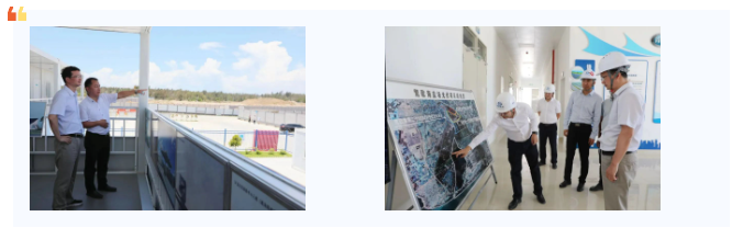 在鶯歌海鹽場納潮湖一、二期200MW光伏項目建設(shè)現(xiàn)場,打樁機轟鳴作業(yè),兩千余根管樁扎實整齊排列。周軍平詳細了解材料運輸調(diào)度、圍堰施工進度、項目智能化運作等情況及存在的困難,并對目前的施工進展給予肯定。他強調(diào),納潮湖200MW光伏項目作為海南最大的灘涂光伏項目,對促進地區(qū)經(jīng)濟發(fā)展,助推自貿(mào)港實現(xiàn)“碳達峰、碳中和”戰(zhàn)略具有重大意義,務(wù)必將創(chuàng)建“四個工程”的要求貫穿項目建設(shè)始終,嚴把質(zhì)量標準,堅持精益求精,抓好每個建設(shè)環(huán)節(jié);要時刻緊繃安全生產(chǎn)這根弦,確保不發(fā)生安全事故;要嚴格貫徹綠色發(fā)展理念,注重在施工過程中采用新技術(shù)、新工藝,落實各項生態(tài)環(huán)境保護措施;要細化責(zé)任、落實到人,杜絕吃拿卡要、利益輸送等違紀違法行為。周軍平還前往鶯歌海鹽場,了解員工的生產(chǎn)生活情況、退休工人的福利待遇及目前生產(chǎn)經(jīng)營存在的難點堵點問題。他勉勵大家保持迎難而上、開拓進取的勢頭,積極拓展新業(yè)務(wù)新市場,提高生產(chǎn)效率與經(jīng)營水平,培養(yǎng)更多高素質(zhì)技能人才,進一步加強自主品牌建設(shè),加快市場化轉(zhuǎn)型步伐。
