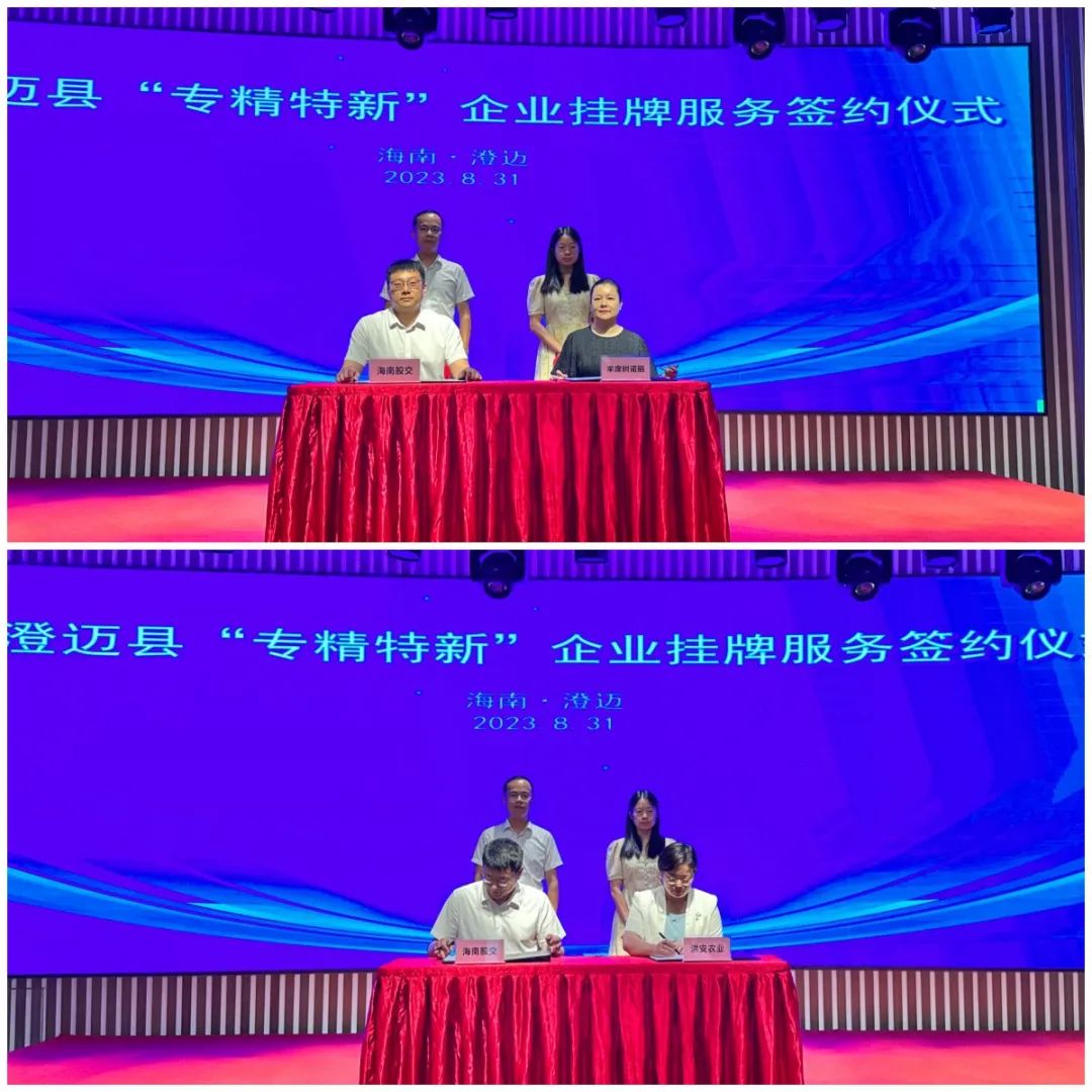 會上,海南股交分別與澄邁“專精特新”企業(yè)海南豐席樹諾麗產(chǎn)業(yè)有限責(zé)任公司、海南洪安農(nóng)業(yè)有限公司兩家企業(yè)簽訂掛牌服務(wù)協(xié)議,后續(xù)將在企業(yè)改制、投融資、培訓(xùn)、咨詢等方面為兩家企業(yè)提供深度服務(wù),助力企業(yè)規(guī)范、快速發(fā)展。