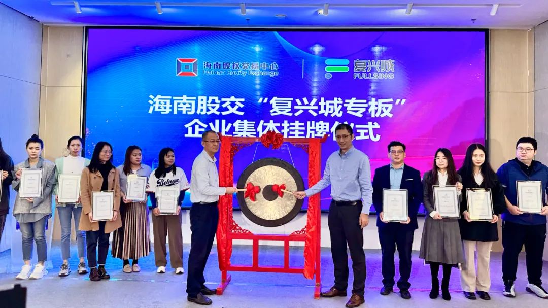 隨著鄧銳、羅洋、吳杰、周博共同按下啟動鍵,海南股交“復(fù)興城專板”正式啟動。隨后,來自互聯(lián)網(wǎng)、綠色能源、電子商務(wù)、教育等領(lǐng)域的20家復(fù)興城入駐企業(yè)集體上臺鳴鑼,集中登陸海南股交“復(fù)興城專板”。