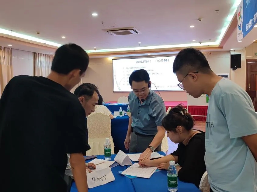 在創(chuàng)業(yè)導(dǎo)師陳銘浩的引導(dǎo)下,與會(huì)創(chuàng)業(yè)者分為若干個(gè)組,通過不同職場(chǎng)角色的扮演,以售賣帽子為主題,模擬企業(yè)經(jīng)營周期,從購買原材料、支付工資成本,到處理貸款利息等各個(gè)方面環(huán)節(jié),按照預(yù)設(shè)的周期完成不同的工作任務(wù),并根據(jù)售賣情況,及時(shí)記錄銷售量、利潤等信息。創(chuàng)業(yè)者深入角色、積極討論,各組間彼此合作、博弈與競(jìng)爭(zhēng)。