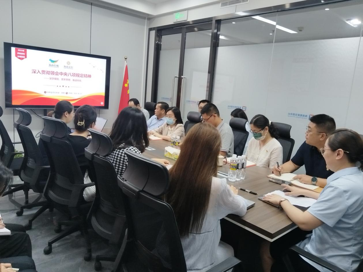 為深入貫徹落實中央八項規(guī)定精神,進一步加強黨風廉政建設,筑牢員工思想防線,推動公司作風建設向縱深發(fā)展,5月21日,海南金控下屬海南股交開展紀檢機構系列主題宣貫會,海南金控紀檢室鄭蓉同志作主題宣貫,海南股交全體員工參加。